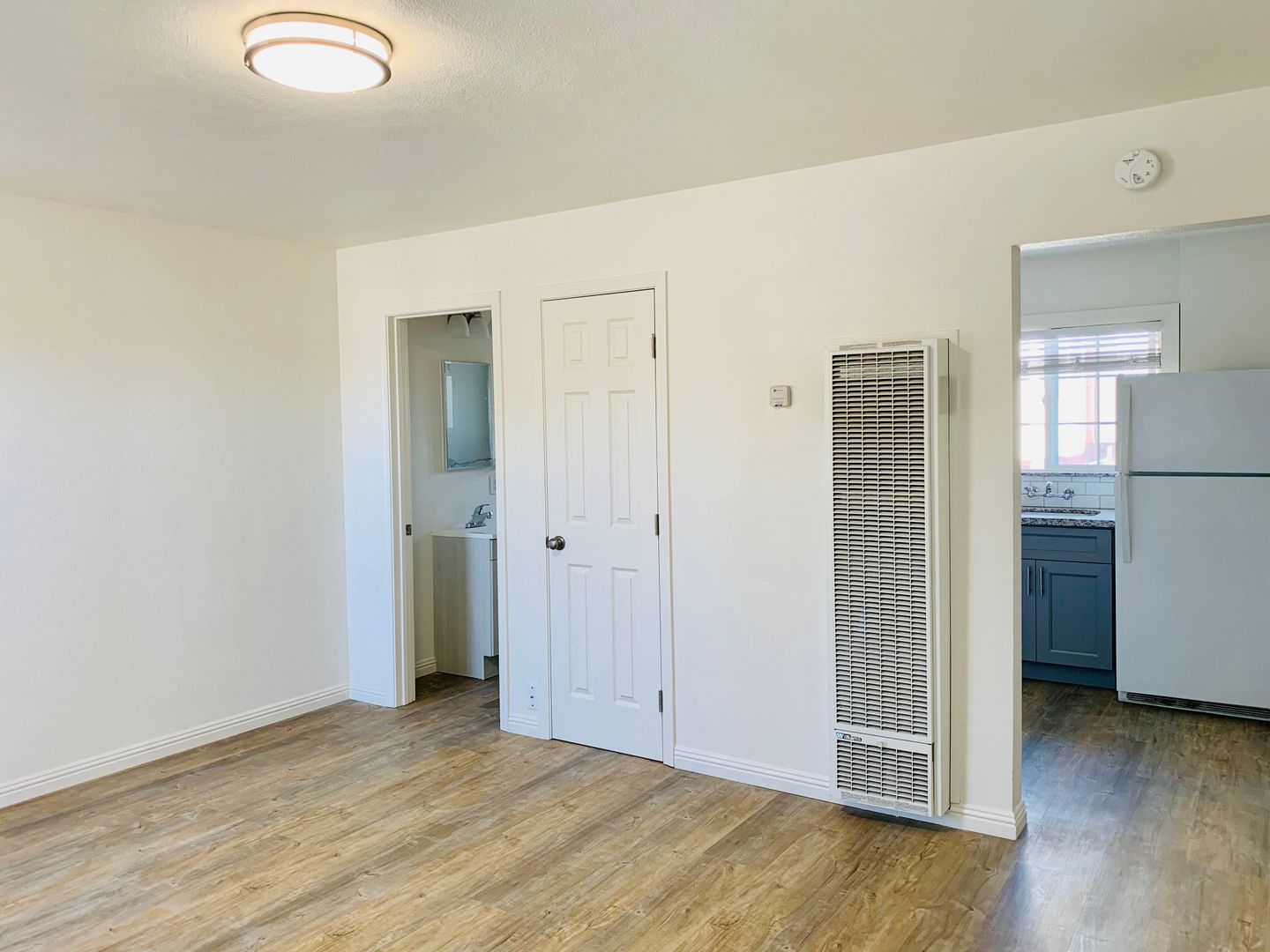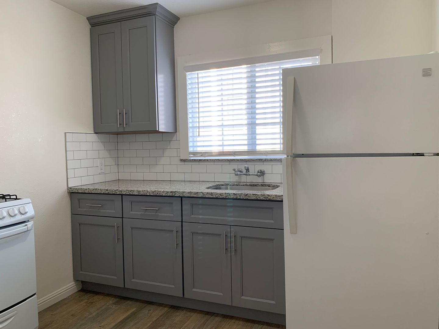 Remodeled upstairs Studio with laminate floors, new windows, screens and window treatment. Kitchen with refrigerator, gas stove, new cabinets and breakfast nook. Granite counter tops and stainless steel sink. Full bathroom with tub and new enclosure, and vanity. Water and garbage paid. One parking space and on-site laundry. Conveniently located to Central and Lawrence Expressway and freeway 101.