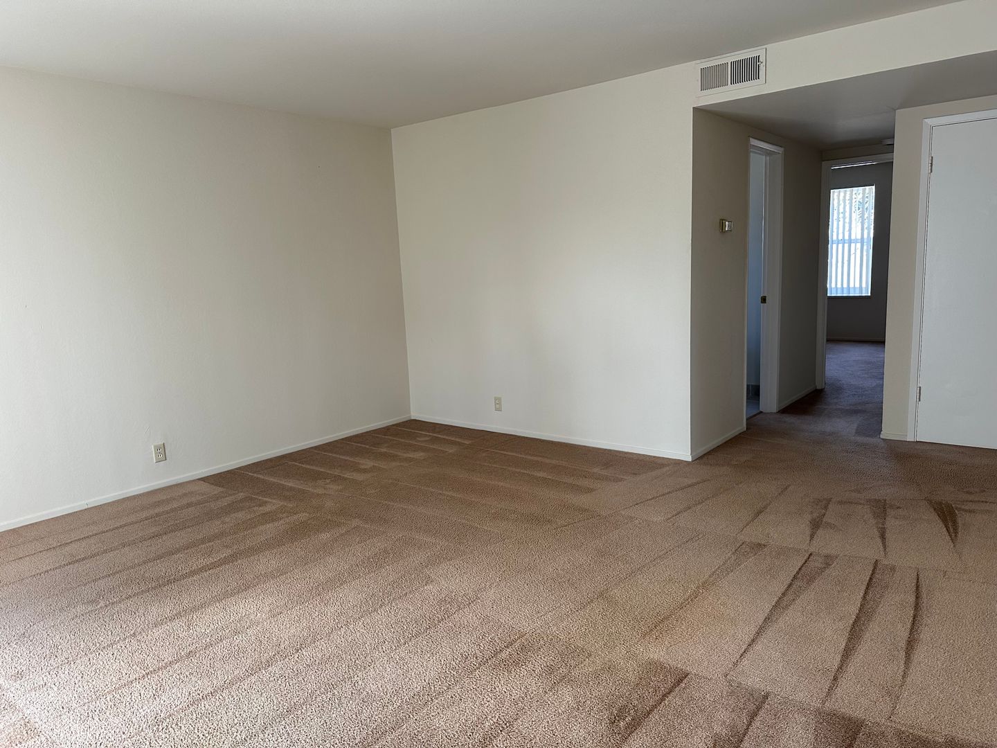 Large upstairs 2-bedroom, 1 bath offers dining area and kitchen with electric stove, dishwasher, and refrigerator. Dining area off kitchen. Blinds throughout, carpet in living room and bedrooms. Bath with tub and separate shower. The unit offers a balcony overlooking green belt. Large pantry inside. Central A/C and heat. Water and garage paid. Detached 1 car garage and laundry onsite. Conveniently located to major freeways, El Camino Real, Wolfe Road and shopping.