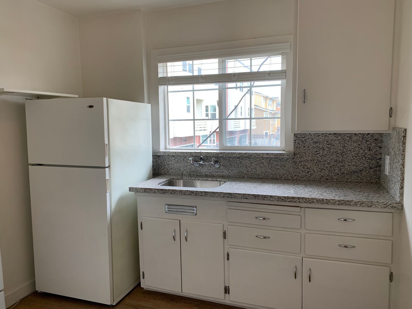Bright and airy upstairs corner studio, freshly painted. Laminate floors. Kitchen with stove, refrigerator and granite counter tops. Bathroom with tub and vanity. Closet in living room. Water and garbage paid. On-site laundry coin operated. 1 parking space. Conveniently located to Central Expressway, freeway 101 and Lawrence Expressway.